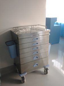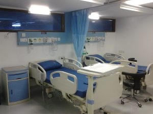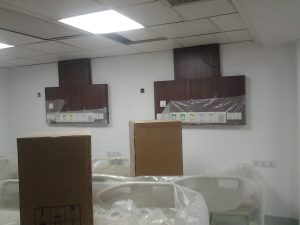 Medical Gas Facilities in CCU: 3 Function Bed with Bed Side Cabinet, Patient Curtain